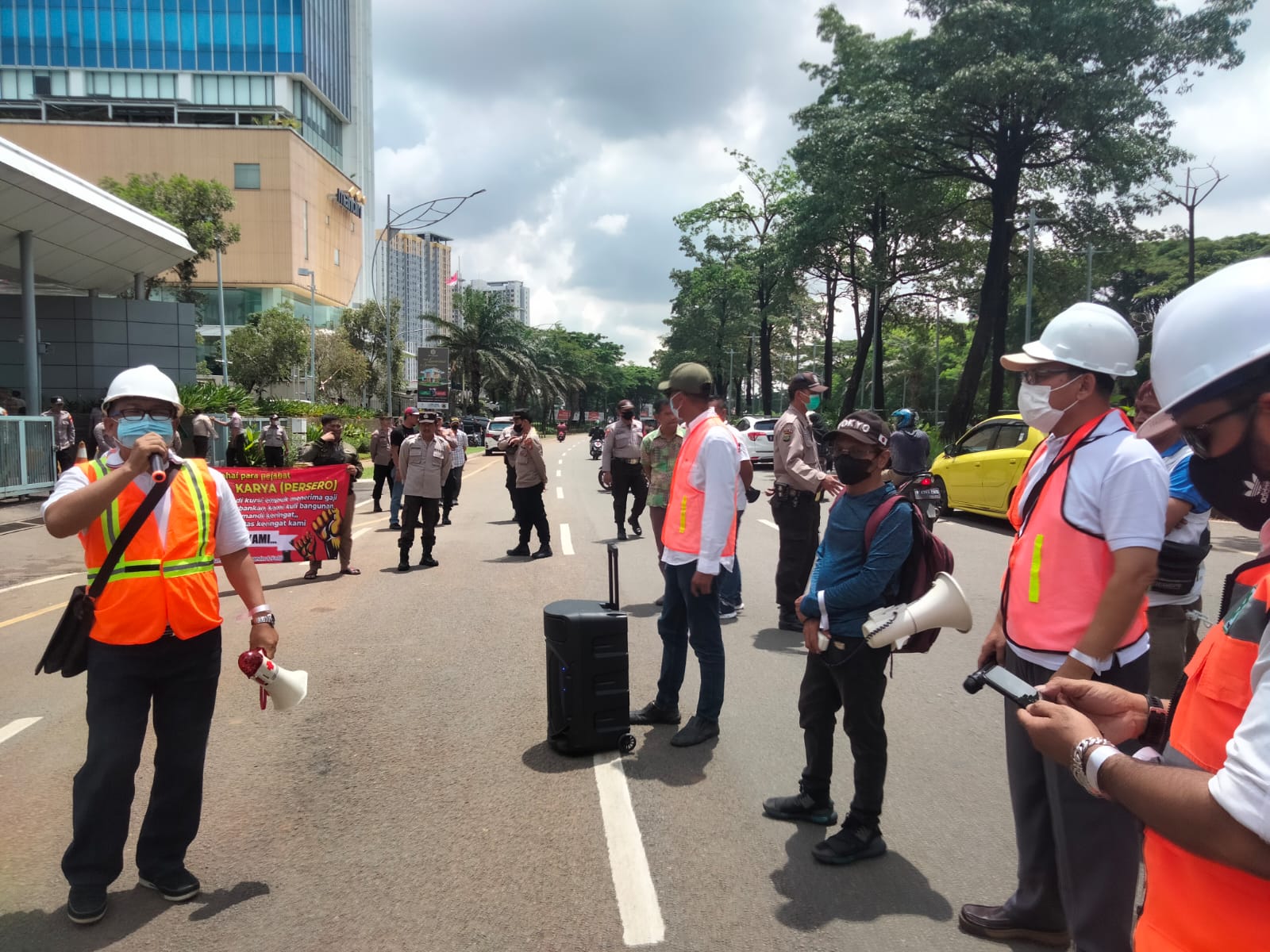 Sementara itu puluhan orang yang tergabung dalam Presidium Vendor dan Mandor & Forbi terlihat melakukan long march dari parkiran Bandar Djakarta menuju Gedung Marketing Galary Summarecon Bekasi, tempat PT. Amarta Karya berkantor.
