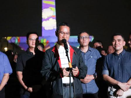 Penjabat (Pj.) Gubernur DKI Jakarta Heru Budi Hartono membuka rangkaian acara Monas Week yang ditandai dengan atraksi video mapping dengan tagline ‘Jakcation’ #Lebaran2023.