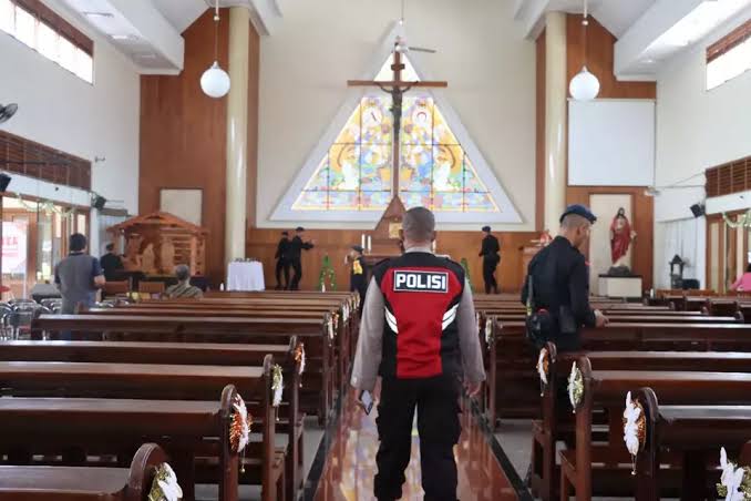 JAKARTAPEDIA.co.id – Polres Metro Jakarta Timur dan Unit Penjinak Bom Gegana Brimob Polda Metro Jaya melakukan sterilisasi dan penyisiran di sejumlah gereja di Jakarta Timur pada Minggu (24/12/2023).