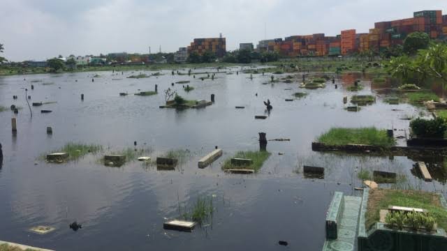 JAKARTAPEDIA.co.id – Tempat Pemakaman Umum (TPU) Semper, Cilincing, Jakarta Utara tepatnya unit Islam blok A2, serta unit Kristen blok A2 dan A1, tergenang usai Jakarta diguyur hujan deras.