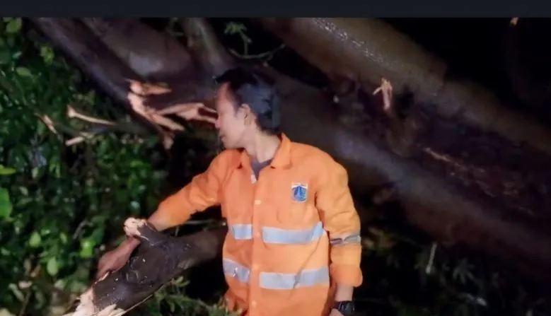 “Cuaca hujan disertai angin kencang terjadi di wilayah Cakung, sehingga pohon yang sudah lapuk tersebut tumbang dan menutupi jalan akses warga,” kata Kasie Ops Sudin Gulkarmat Jaktim Gatot Sulaeman.
