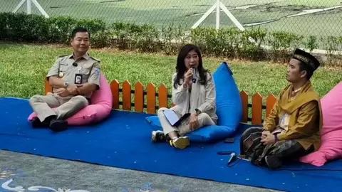 Didampingi, Pj Gubernur DKI Teguh Setia Budi, Meutya Hafid menyapa para warga di ruang publik terbuka ramah anak Kelurahan Semper Barat.