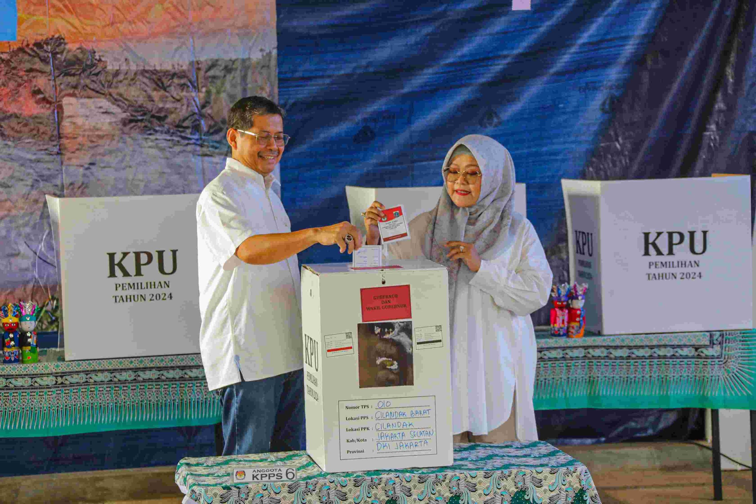 JAKARTAPEDIA.co.id – JAKARTA SELATAN – Sekretaris Daerah Provinsi DKI Jakarta Marullah Matali menggunakan hak pilihnya pada Pemilihan Kepala Daerah (Pilkada) DKI Jakarta, di TPS 010, Kelurahan Cilandak Barat, Cilandak, Jakarta Selatan, pada Rabu pagi (27/11/2024). Ia didampingi sang istri, Komariah Marullah.