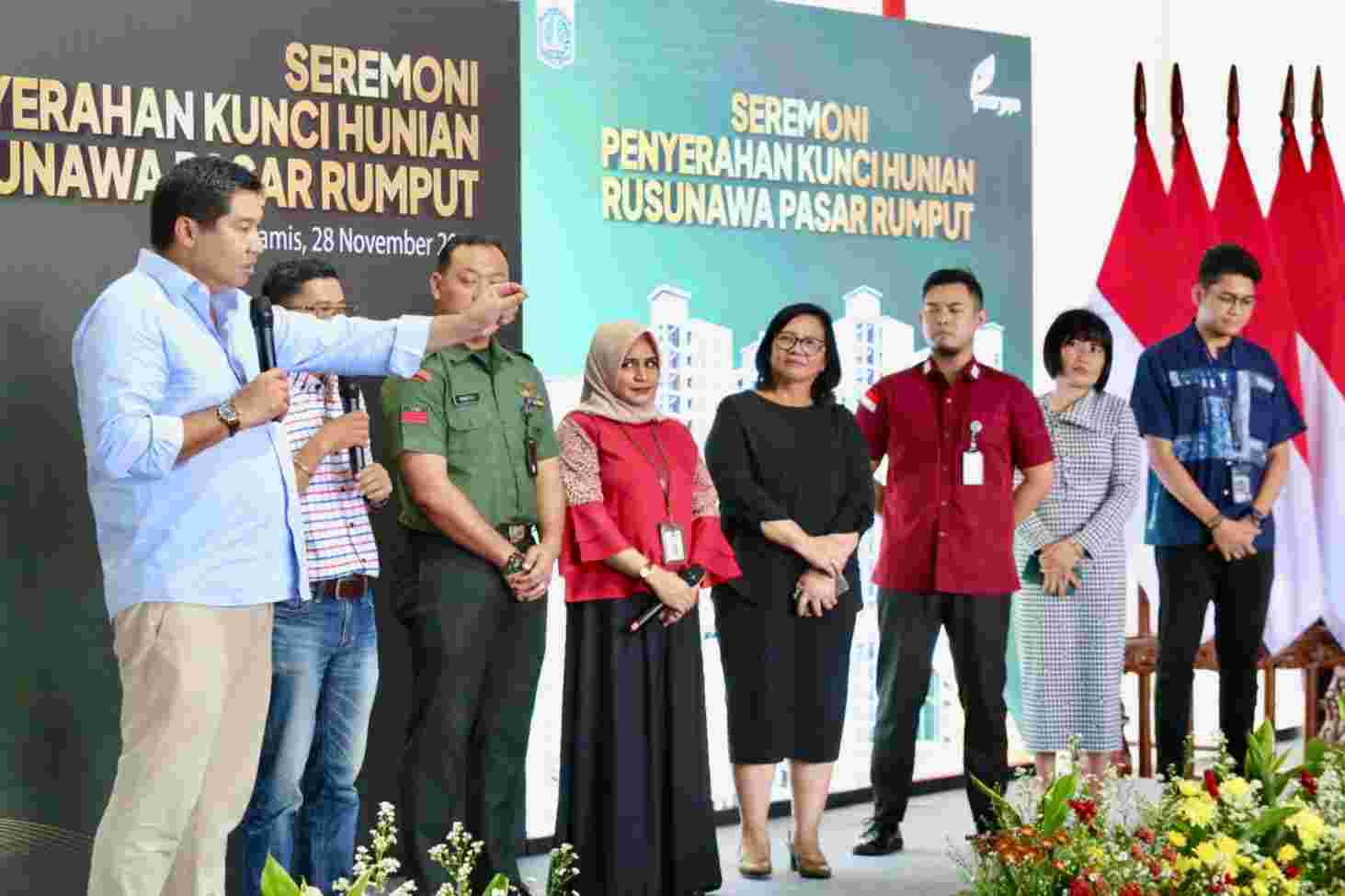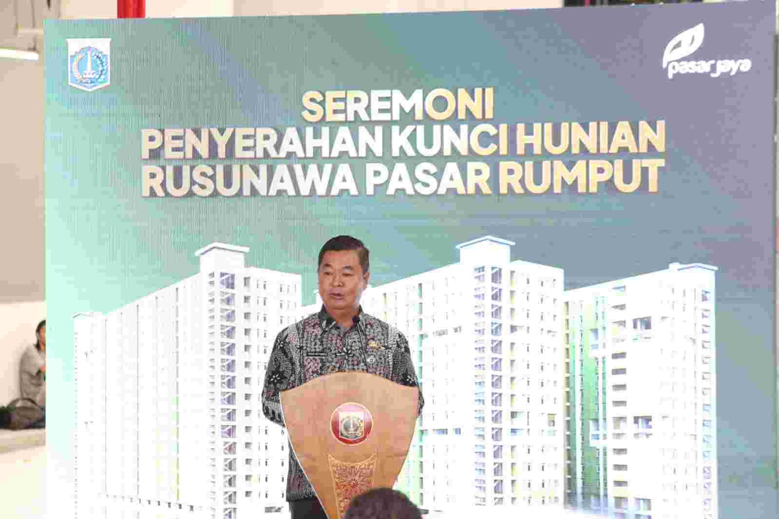 Penerima kunci tersebut adalah warga yang lolos verifikasi Program Hunian Terjangkau dan Layak di Rumah Susun Sewa (Rusunawa) Pasar Rumput, Jakarta Selatan.