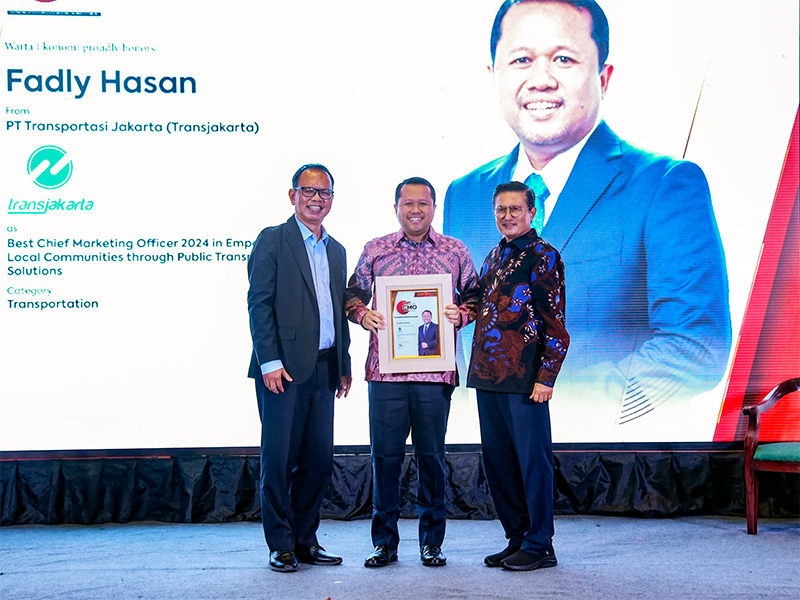 Transjakarta meraih penghargaan untuk kategori Best Chief Marketing Officer 2024 in Empowering Local Communities through Public Transport Solutions.