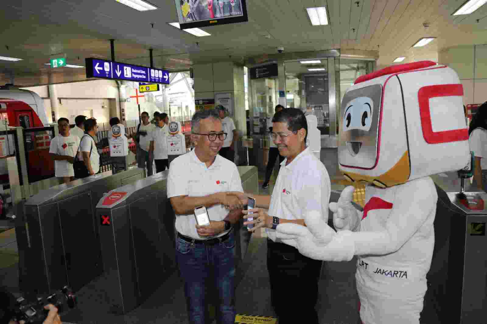 Selepas perayaan HUT ke-5 operasional komersial, Sekda Marullah bersama jajarannya mencoba menggunakan sistem uang digital Larata Pay sebagai bagian dari transaksi untuk menggunakan layanan LRT Jakarta, di Stasiun Velodrom.