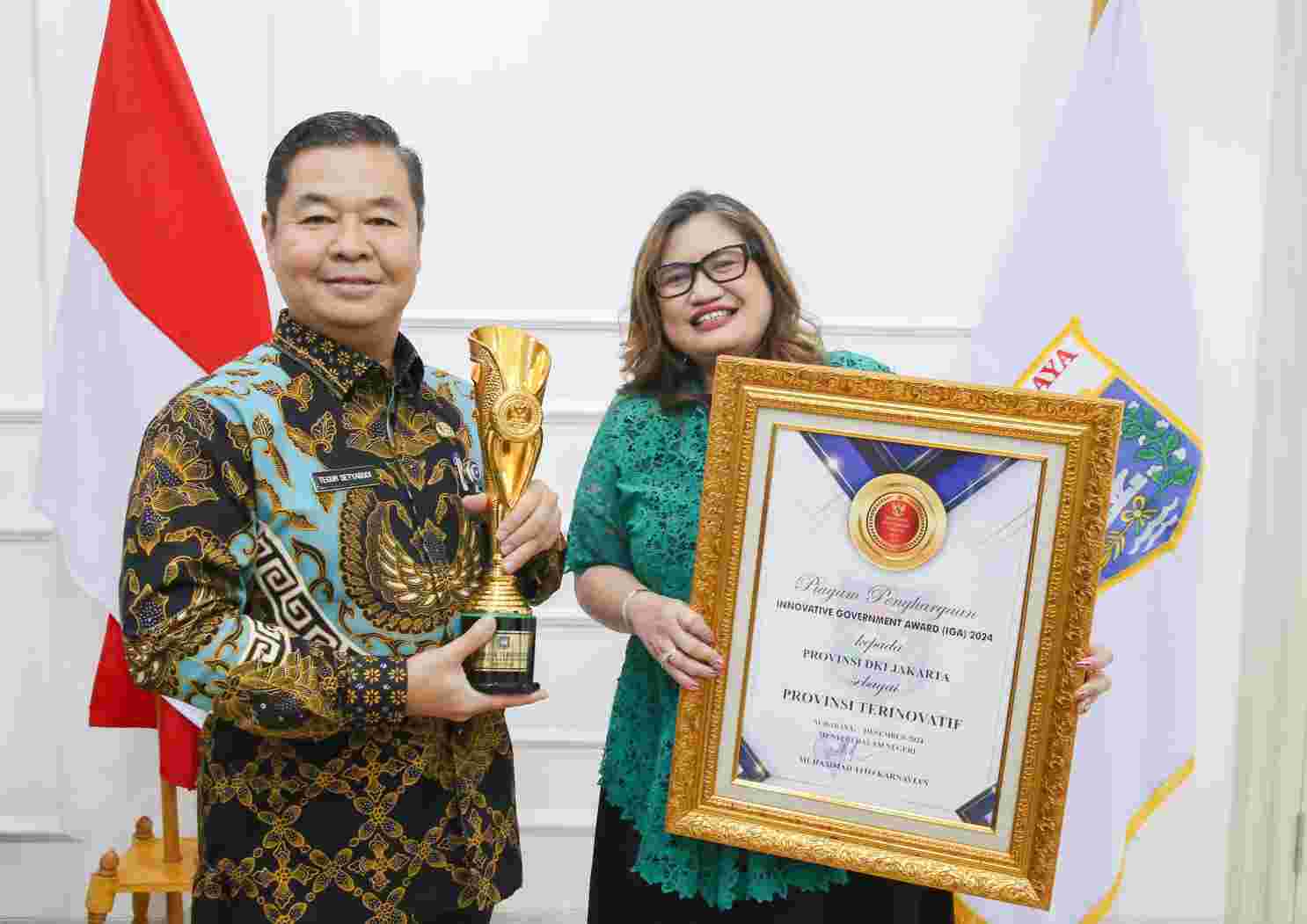 “Alhamdulillah, Pemprov DKI Jakarta meraih dua penghargaan jelang akhir tahun ini. Terima kasih kepada seluruh jajaran Pemprov DKI Jakarta yang telah bekerja keras untuk menciptakan inovasi terbaik bagi kemajuan kota kita tercinta ini,” ujar Pj. Gubernur Teguh di Jakarta, Kamis (12/12/2024).