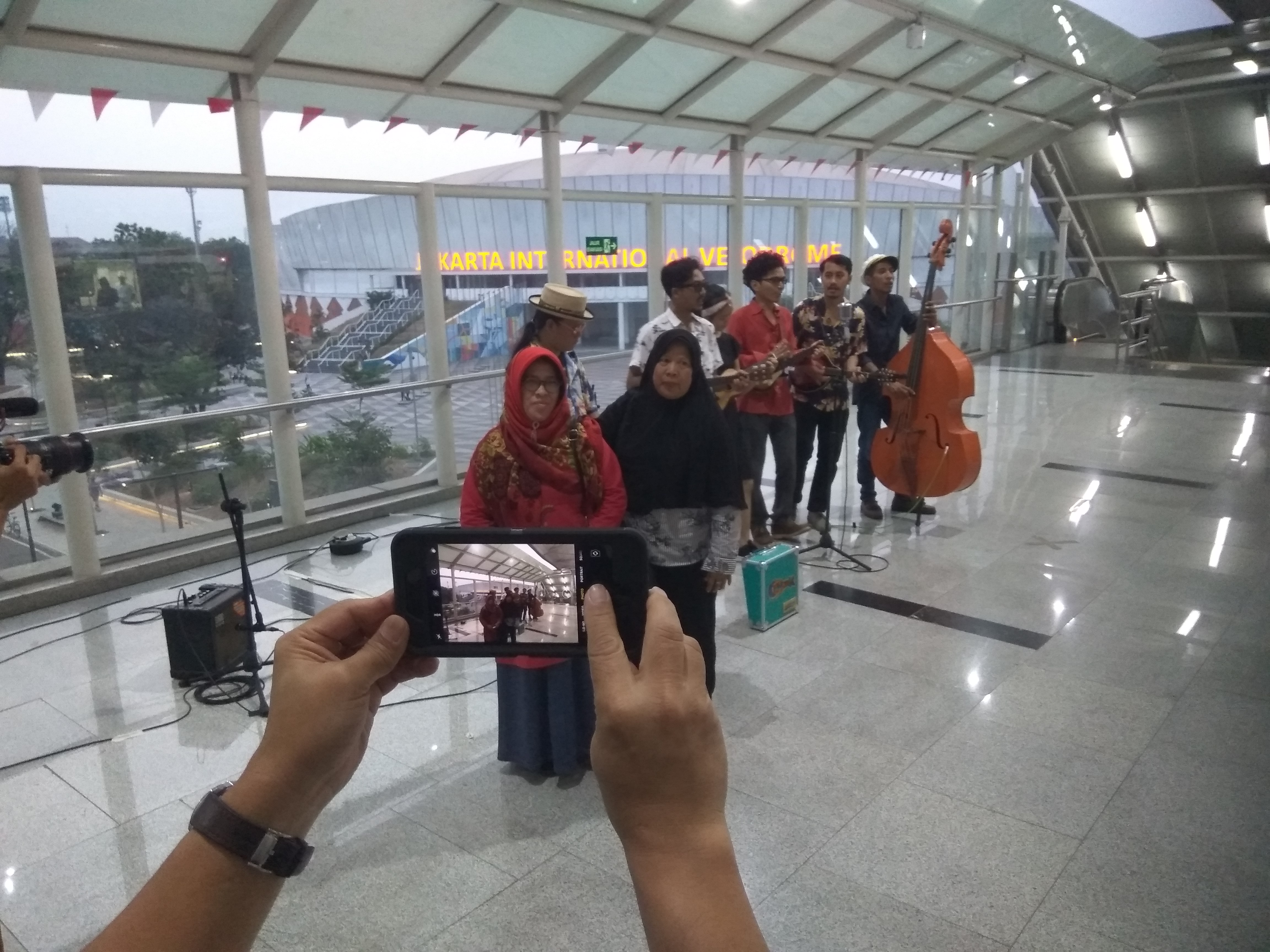 Lantunan lagu-lagu keroncong bernada tropikal membawa suasana pelanggan ke suasana pantai. Ada Bengawan solo, Halo-halo Bandung dan lainnya. Tak jarang, penumpang LRT pun berswafoto bersama grup musik itu. Bahkan, beberapa diantaranya ikut larut dalam irama mereka.