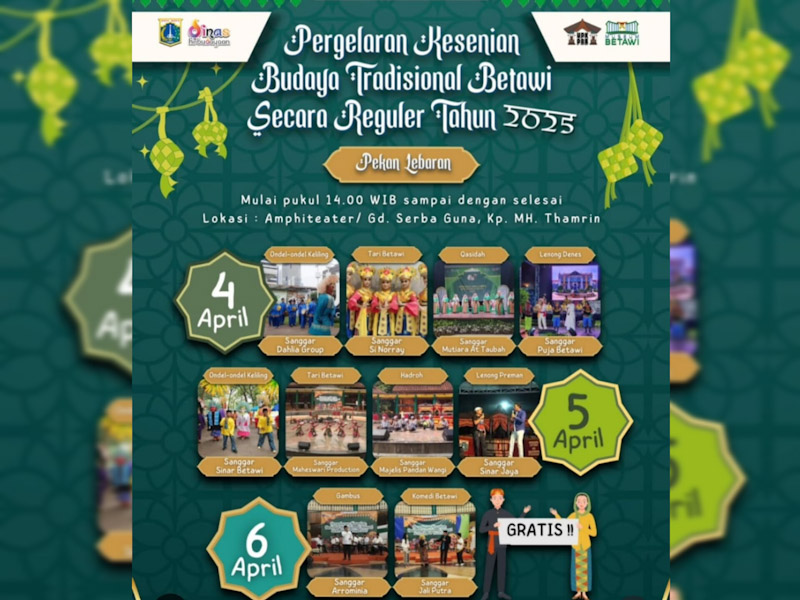 Pasalnya, mulai Jumat (4/4/2025) hingga Minggu (6/4/2025), di lokasi wisata budaya ini ada acara Pekan Lebaran yang dikemas dalam Pagelaran Kesenian Budaya Tradisional Betawi Secara Reguler.