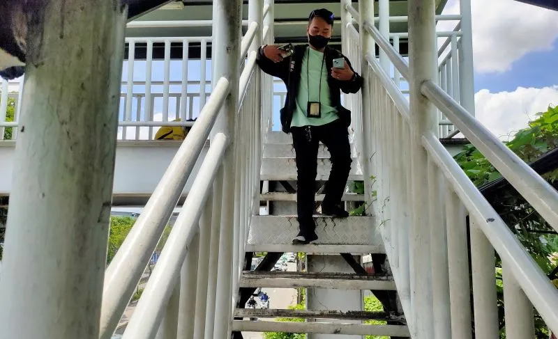 “Saya jualan di sini itu 24 jam, gantian sama bapak. Tapi itu (pelat JPO) sepertinya, dicuri pas jam tiga pagi pada bulan puasa. Makanya kita tak sadar gitu,” kata Nurhayati.