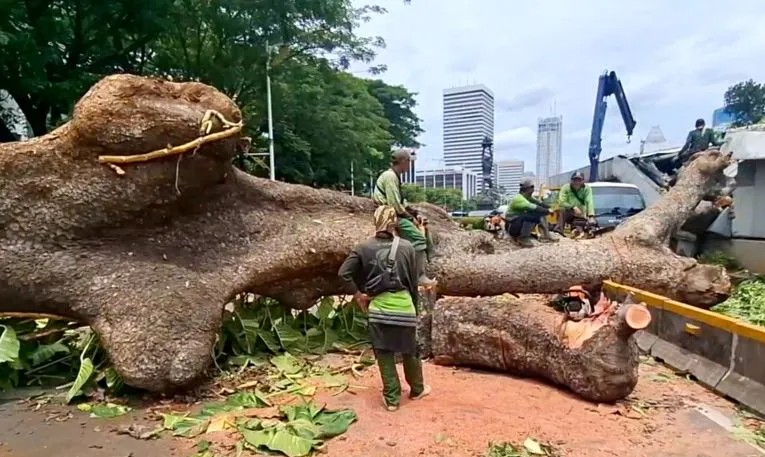 “Sejauh ini tidak ada korban jiwa, hanya kerusakan materiil saja. Pohonnya mengenai pagar Kemenlu dan konstruksi atap dari MRT, ” kata Kabagops Ditlantas Polda Metro Jaya, Kompol Robby Hefadus saat dikonfirmasi di Jakarta, Kamis (20/11/2025).