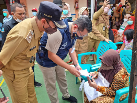 Kepala Dinas Kependudukan dan Pencatatan Sipil (Dukcapil) DKI Jakarta, Budi Awaludin memantau langsung kegiatan layanan jemput bola sekaligus menyerahkan secara simbolis administrasi kependudukan (adminduk) di RW 13, Kelurahan Malaka Jaya, Kecamatan Duren Sawit, Jakarta Timur. (bj/ist/dra)