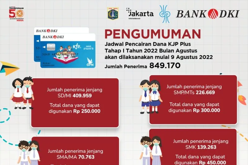 JAKARTAPEDIA.co.id – Dinas Pendidikan DKI Jakarta mencairkan dana Kartu Jakarta Pintar (KJP) Plus Tahap I Tahun 2022 pada Agustus dengan penerima sebanyak 849.170 siswa Jakarta.