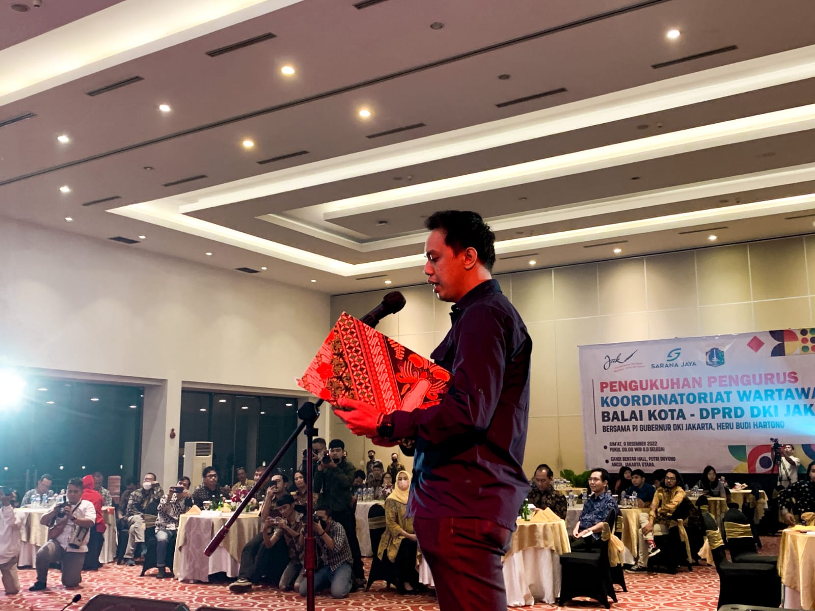 JAKARTAPEDIA.co.id – Penjabat (Pj) Sekretaris Daerah Provinsi DKI Jakarta, Uus Kuswanto menyaksikan langsung prosesi pengukuhan pengurus Koordinatoriat Wartawan Balaikota-DPRD DKI Jakarta (Balkoters) periode 2022-2024 di Candi Bentar, Putri Duyung Cottage, Ancol, Jakarta Utara, Jumat (9/12/2022) malam.