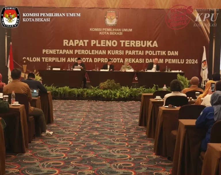 BEKASI, JAKARTAPEDIA.co.id – Komisi Pemilihan Umum (KPU) Kota Bekasi telah melaksanakan Rapat Pleno Terbuka Penetapan Perolehan Kursi Partai Politik dan Calon Terpilih Anggota DPRD Kota Bekasi dalam Pemilu 2024 pada Selasa (28/5/2024) malam, di Hotel Horison Ultima Bekasi, Jl. KH. Noer Ali, Bekasi.