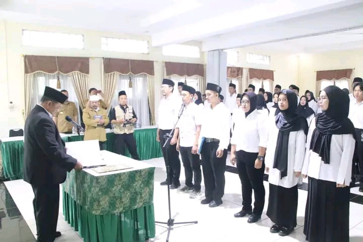 Prosesi pelantikan dan pengambilan Sumpah Jabatan dipandu oleh Ketua Panwaslu Kecamatan Sukabumi.