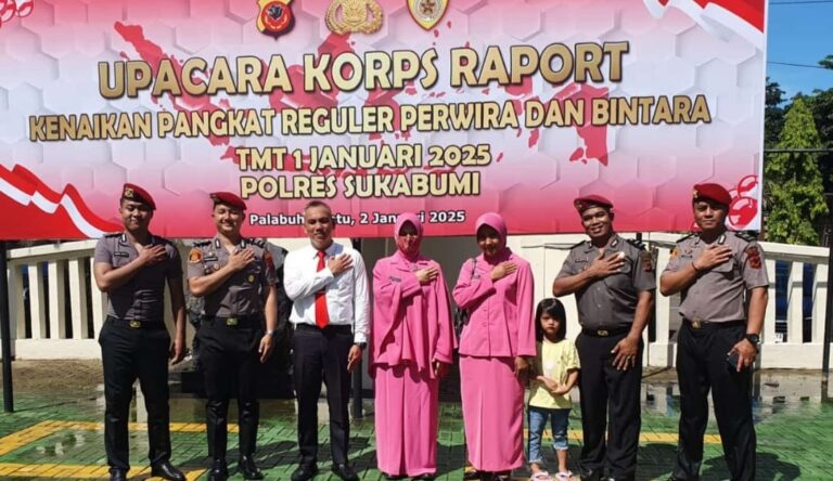 SUKABUMI | JAKARTAPEDIA.co.id – Di awal tahun 2025, sebanyak 11 perwira dan 53 Bintara di Polres Sukabumi resmi naik pangkat dalam upacara Korps Raport yang dipimpin langsung oleh Kapolres Sukabumi, AKBP Dr. Samian, S.H, S.I.K., M.Si, pada Kamis (2/1/2025).