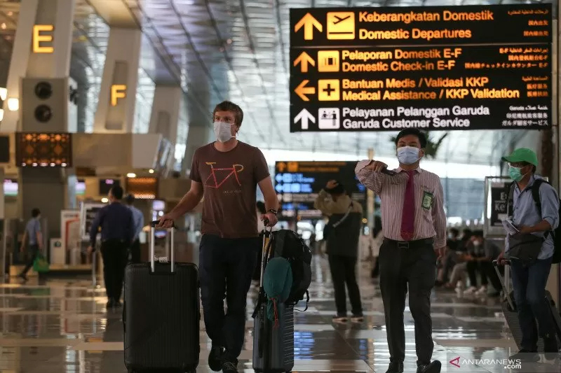 Seorang warga negara asing (WNA) berjalan di Terminal 3 Bandara Internasional Soekarno-Hatta, Tangerang, Banten. (ant/ist)