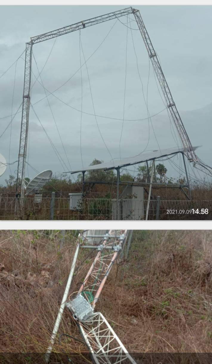 MALUKU BARAT DAYA, MALUKU (JAKARTAPEDIA.id) – Sebuah menara telekomunikasi atau Base Transceiver Station (BTS) roboh di Desa Tounwawan, Kecamatan Moa, Kabupaten Maluku Barat Daya, Kamis (09/09/2021). Sekertaris Dewan Pertimbangan Pengurus Pemuda (DPP) Desa Tounwawan, Sosfater Nahakleky memastikan tidak ada korban jiwa dalam peristiwa tersebut.