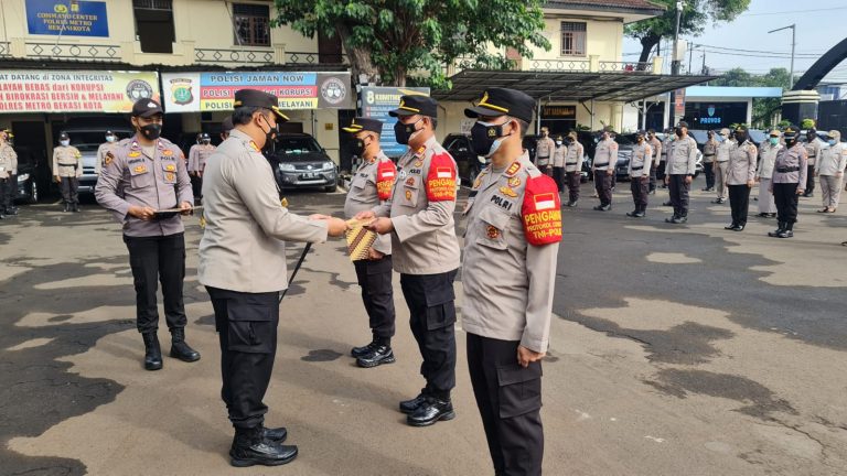 BEKASI, JAWA BARAT (JAKARTAPEDIA.id) – Kapolres Metro Bekasi Kota, Kombes Pol. Aloysius Suprijadi memberikan penghargaan kepada tiga Kapolsek atas peran aktifnya dalam melaksanakan vaksin dan melakukan tugas melebihi tugas pokoknya saat apel pagi di Mapolres Metro Bekasi Kota pada Rabu (15/9/2021).