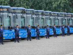 JAKARTAPEDIA.co.id – Penjabat (Pj) Gubernur DKI Jakarta Teguh Setyabudi menghadiri peluncuran dan pengoperasian armada bus listrik baru Transjakarta di Plaza Selatan Monas,